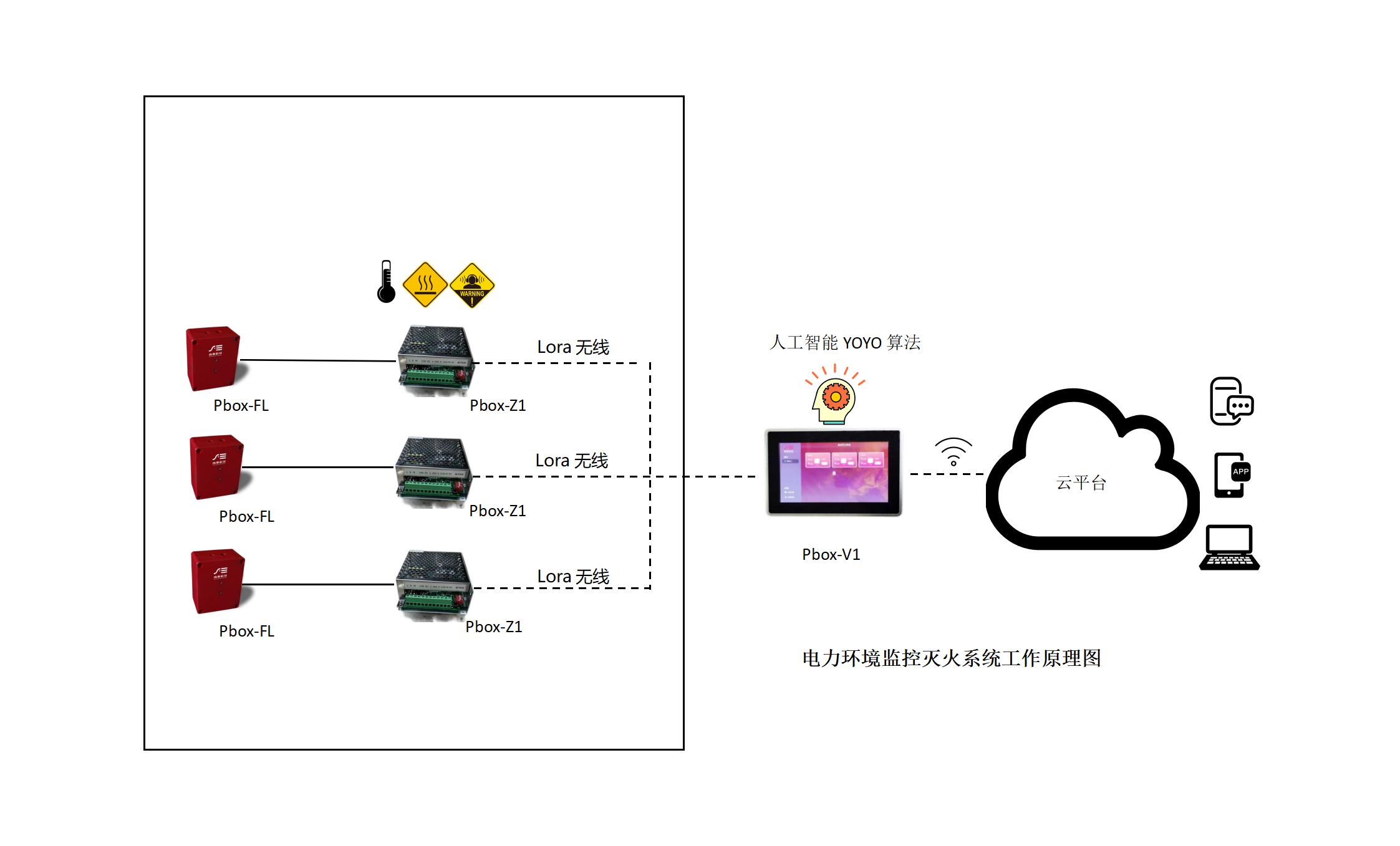 内置边缘计算 AI 引擎,通过多源数据融合算法构建火灾概率模型: